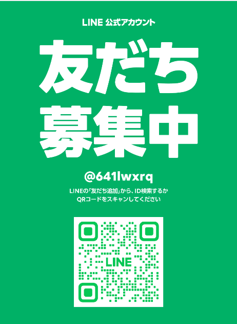 下記のLINE公式アカウントからのお問合せも受け付けております。